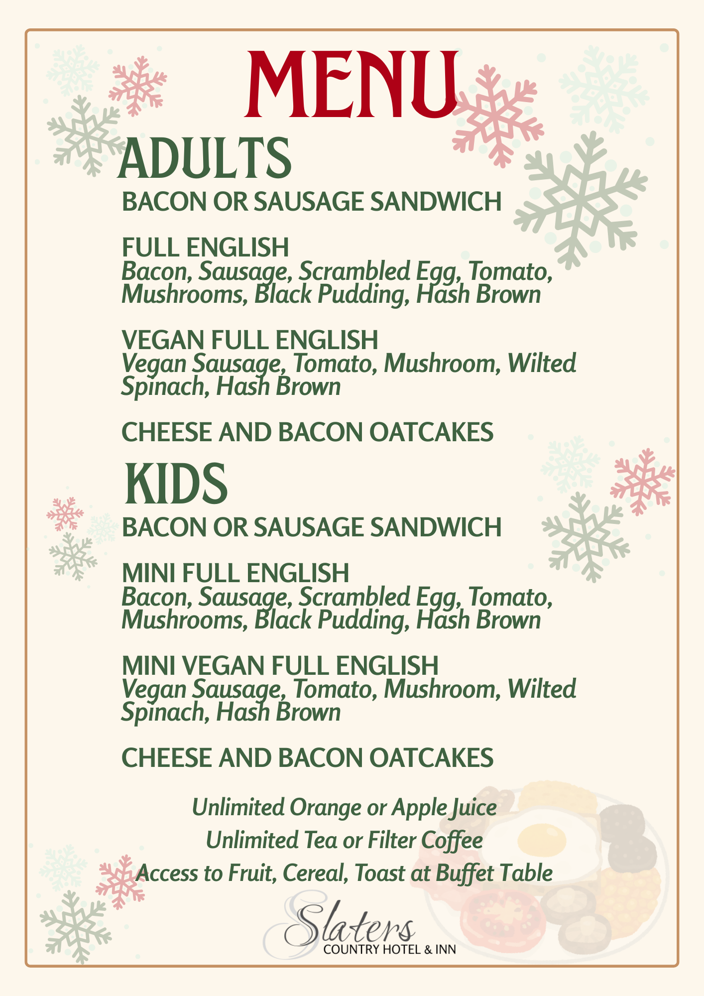 Meet Santa & enjoy a delicious cooked breakfast in the Briar Suite here at Slater’s this Christmas!